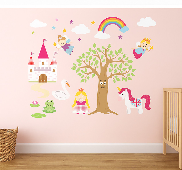 Reference: A54132Bring your child's imagination to life with our stunning Nursery wall art sticker pink pony princess realm. This enchanting design features a whimsical pink pony surrounded by a magical princess realm, adorned with delightful pastel colors and charming details that create a captivating atmosphere. Perfect for sparking creativity and joy, this beautiful wall art will transform any nursery into a dreamland!