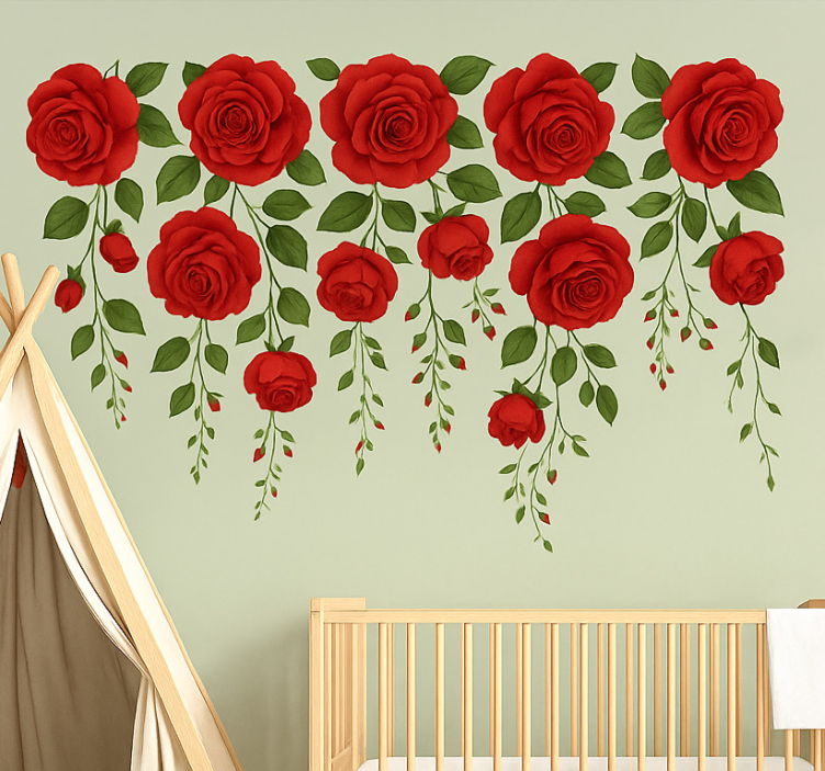 The Nursery wall sticker hanging red rose vines Nursery wall sticker is perfect for bringing life to your child's space. Its enchanting floral design can transform any bare wall into a beautiful backdrop, sparking imagination and warmth. This wall sticker serves not only as decoration but also as a way to create a nurturing environment where dreams blossom and playtime flourishes!
