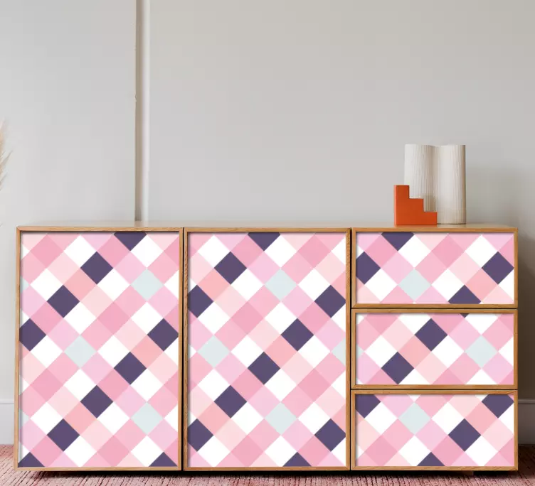 Introducing our Object sticker pink patterned surface, a stunning fusion of modern design and vibrant colors! This captivating design features a checkered geometric pattern that adds a playful touch to any room. Perfect for enhancing furniture or adorning a drawer, this decorative piece brings a unique texture that transforms your home decor into a lively and inviting space.