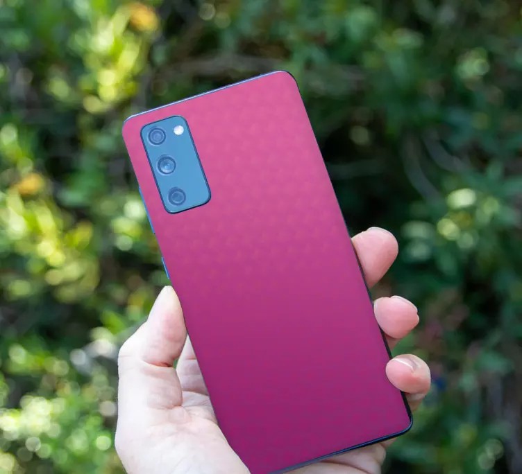 Transform your phone with our stunning Samsung stickers gradient color skin! Featuring a vibrant pink pattern with a sleek carbon texture, this colorful adhesive is designed to elevate your device's style while providing protection. The eye-catching design not only enhances the visual appeal but also serves as a durable shield against scratches and stains. Enjoy a seamless blend of art and functionality!