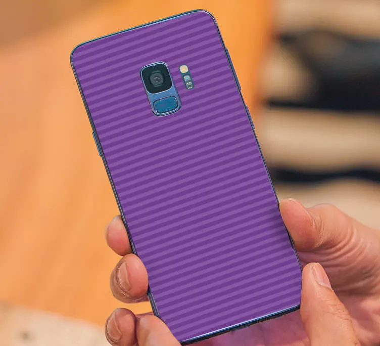 Applying our Samsung stickers purple striped surface Samsung stickers is a breeze! Simply peel off the backing, align it with your phone, and smooth it down for a flawless finish. Enjoy a durable and stylish decoration in no time!