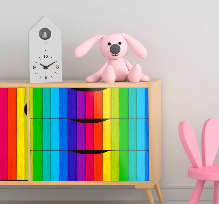 Introducing our Shape sticker with bright vertical stripes, a vibrant and abstract design that features a stunning combination of multicolor stripes reminiscent of wood planks. This captivating sticker brings the beauty of rainbow hues into your space, creating a lively atmosphere that enhances any furniture or decor. Its wood-effect finish adds a touch of nature, making it a perfect choice for those who appreciate artistic patterns and want to add a pop of color to their environment.