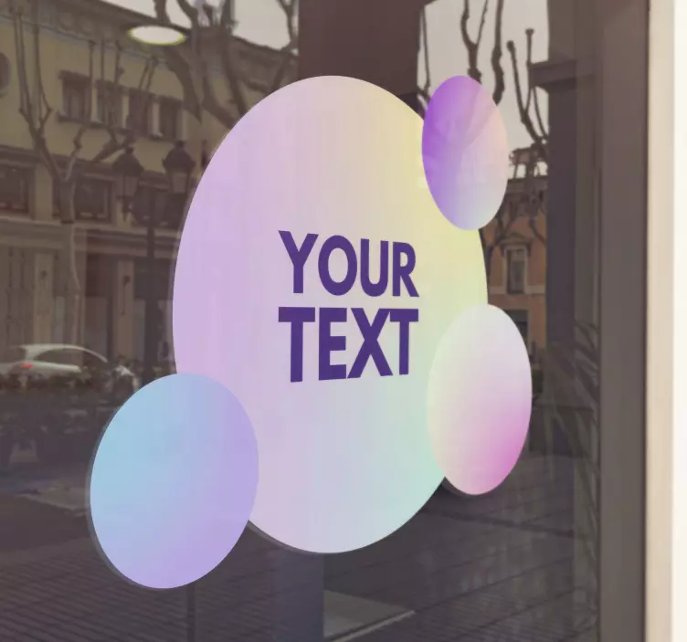 Introducing our stunning Shop window sticker customizable text circles, designed to elevate your space with a modern and vibrant touch! Featuring a beautiful gradient of colors, this fluid and abstract geometric design captures attention effortlessly. Perfect for shop windows, these customizable stickers allow you to add your own text, making them not only colorful but also uniquely yours!