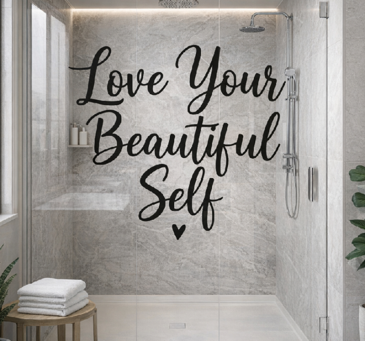 The Shower screen sticker positive self-love design shower screen sticker serves as a daily reminder to embrace self-acceptance and positivity. It transforms your bathroom into a sanctuary of inspiration, encouraging you to start each day with a smile. A simple yet effective way to elevate your space, this sticker not only beautifies but also uplifts your mood, making it a must-have for anyone who values self-love!