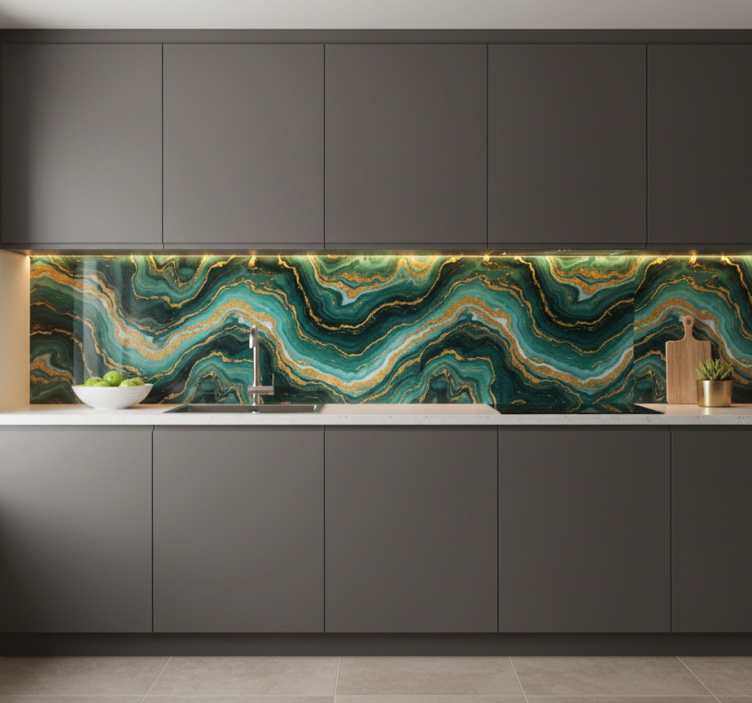 Reference: A54019Transform your bathroom into a luxurious oasis with our Tile decal for bathroom golden green marble effect. This stunning design features a beautiful blend of rich golden hues and deep green tones, creating a captivating marble effect that elevates any space. The intricate patterns and vibrant colors come together harmoniously, adding a touch of sophistication and elegance to your decor.
