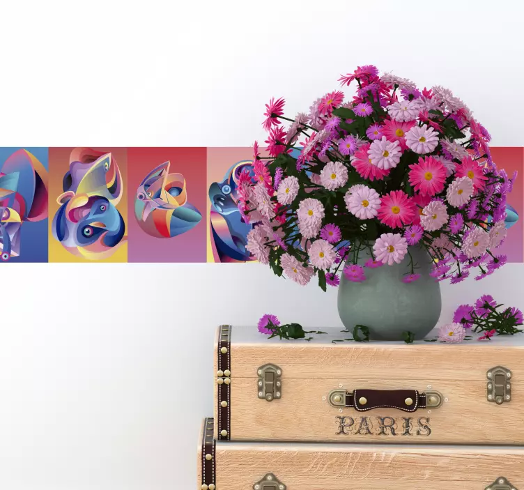 Transform your space with our Wall border sticker abstract colorful shapes, a stunning design that features playful and modern geometric patterns inspired by animals and abstract art. This vibrant wall border sticker infuses any room with a sense of joy and creativity, making it the perfect choice for those looking to add a splash of color and style!