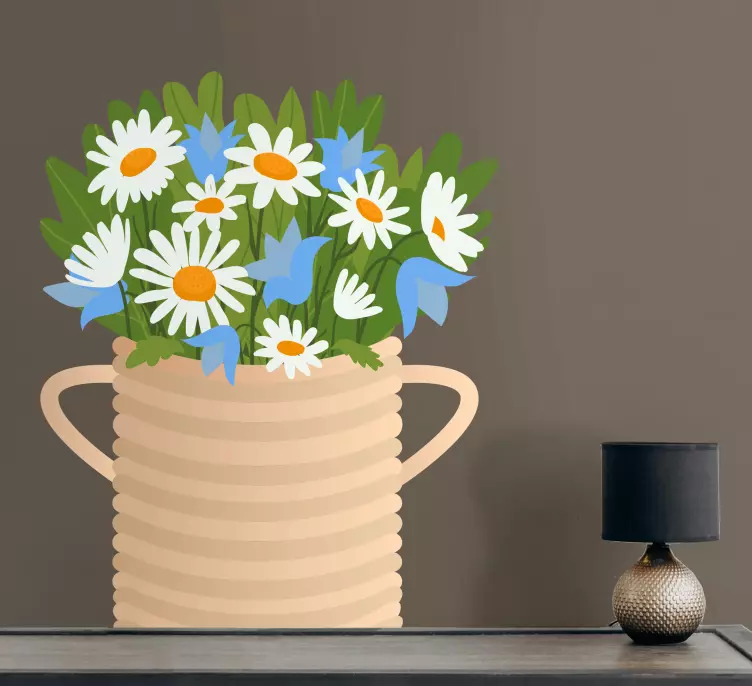 Transform your space with our stunning Wall sticker floral arrangement vase, featuring a beautiful blend of vibrant daisies, delicate blue petals, and lush green leaves. This enchanting design encapsulates the essence of nature, bringing a breath of fresh air into any room. Whether you want to brighten up your living room or add a touch of elegance to your bedroom, this wall sticker is the perfect choice!