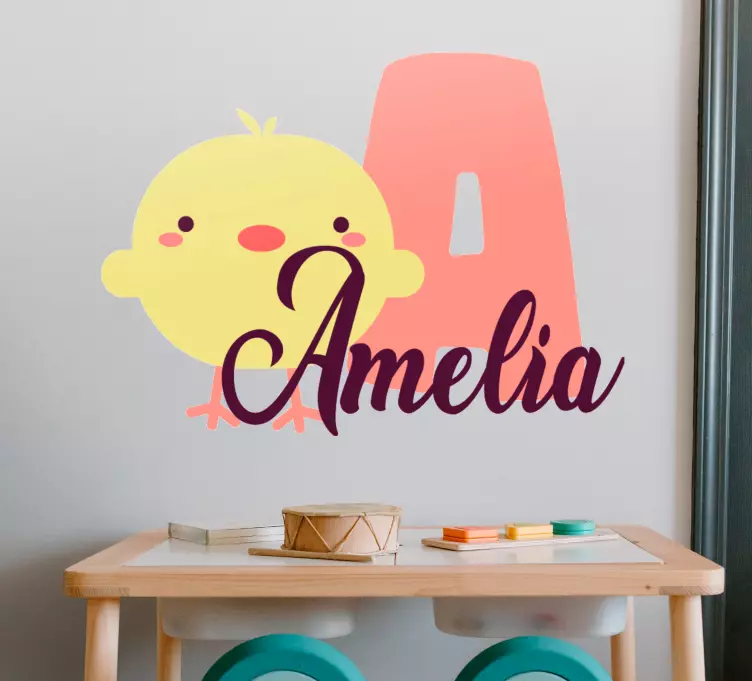 Transform your child's room into a vibrant sanctuary with our Wall sticker for kids cute chick design. This delightful cartoon design features a charming chick alongside the initial and name, offering a personalizable touch that adds a playful spirit to any kids' decor. The colorful and customizable nature of this wall sticker makes it a perfect addition to children's decor, ensuring a joyful atmosphere that sparks imagination!