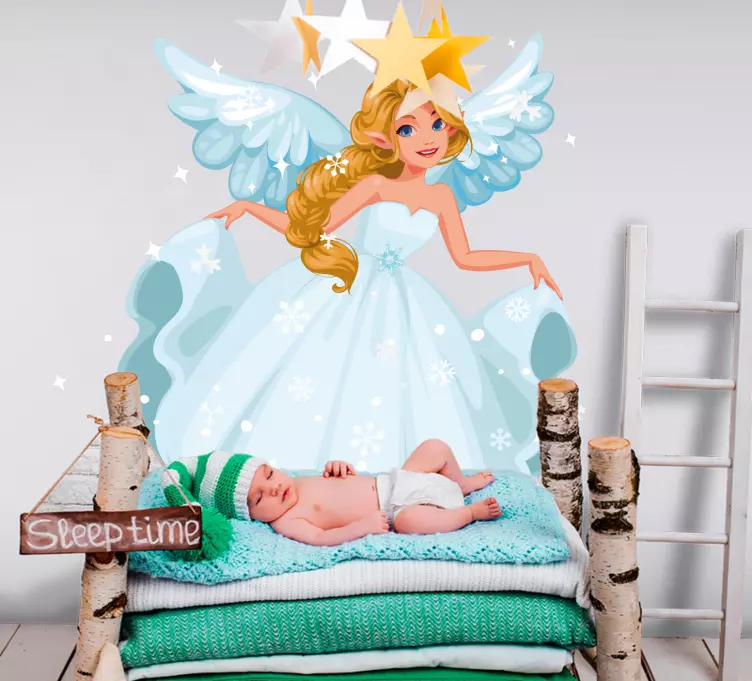 Transform your child's room into a whimsical wonderland with our Wall sticker for kids fairy with wings. This enchanting design features a delightful fairy gracefully soaring with delicate wings, surrounded by sparkling snowflakes that evoke a sense of magic and fantasy. Perfect for igniting the imagination of children, this artistic piece brings a touch of joy and creativity to any space!