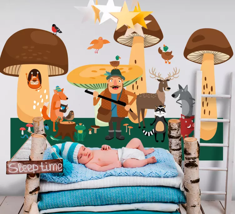 Transform your little one's room into a magical world with our Wall sticker for kids forest animal adventure. This enchanting design features adorable woodland creatures, vibrant mushrooms, and lush forest scenery, creating a whimsical atmosphere perfect for bedtime. With its charming illustrations of wildlife and nature, this children's decor piece will inspire imagination and joy in your child's space!