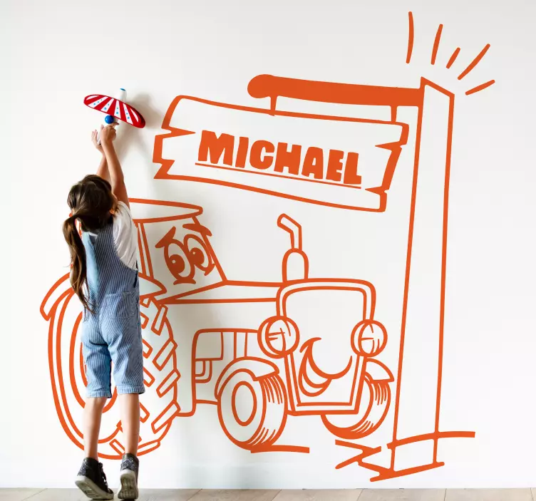 Introducing our Wall sticker for kids playful tractor scene, a delightful addition to any child's room! This whimsical design features a hand-drawn tractor that captures the imagination of children, making their space more fun and inviting. With customizable text options, you can create a personalized touch that reflects your child's unique personality. The playful elements of this design bring joy and creativity, making it a perfect choice for enhancing your little one's environment.