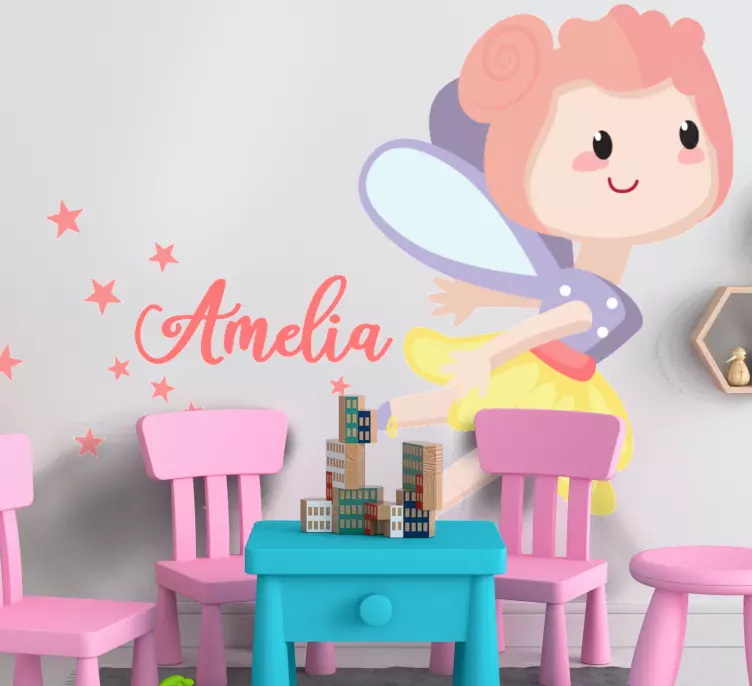 Transform your child's room into a magical wonderland with our Wall sticker for kids whimsical fairy character. This enchanting design features a delightful fairy girl, complete with a custom name in elegant calligraphy. Bursting with a playful fantasy vibe, it invites imagination and creativity into any children's room. The colorful elements of this sticker are sure to spark joy and inspire countless adventures!