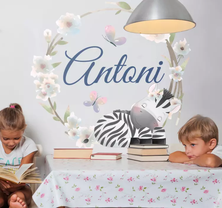 Transform your child's room into a vibrant oasis with our Wall sticker for kids zebra floral design. This enchanting design features a whimsical zebra surrounded by playful flowers, creating a delightful atmosphere that sparks joy and creativity. The customisable aspect allows you to add your child's name in elegant calligraphy, making it uniquely theirs. The combination of cute animals and floral elements ensures that this sticker is not just a decoration, but a cherished part of their space!