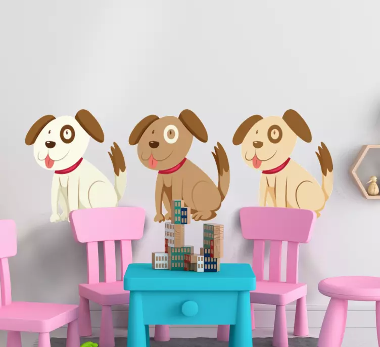 Welcome to a world of joy with our Wall sticker playful puppy trio! This delightful design features adorable puppies in a vibrant and colorful cartoon style that captures the essence of cute animal friends. Each dog is playfully illustrated, radiating happiness and charm, making it the perfect addition to any space looking for a touch of warmth and cheer.