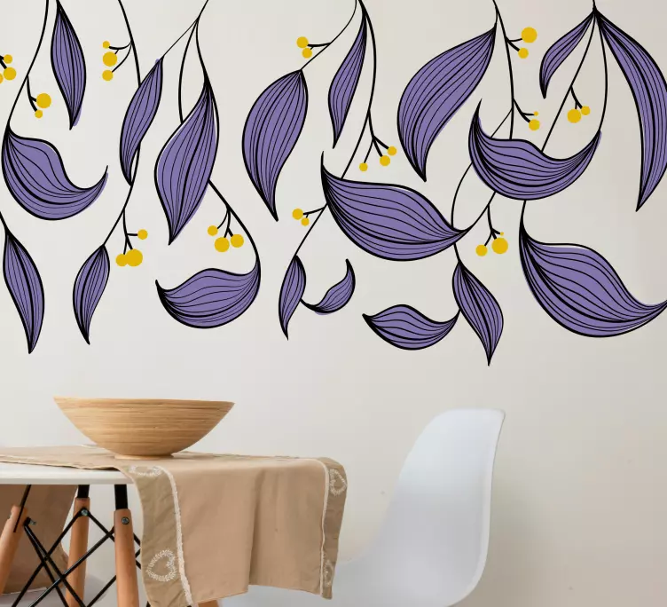 Transform your space with our stunning Wall sticker purple leaf pattern. This exquisite design features hanging leaves and vibrant flowers, bringing a touch of nature into your home. The elegant purple tones and colorful elements create a decorative atmosphere that enhances any room. This decorative piece not only adds beauty but also reflects your love for the outdoors!