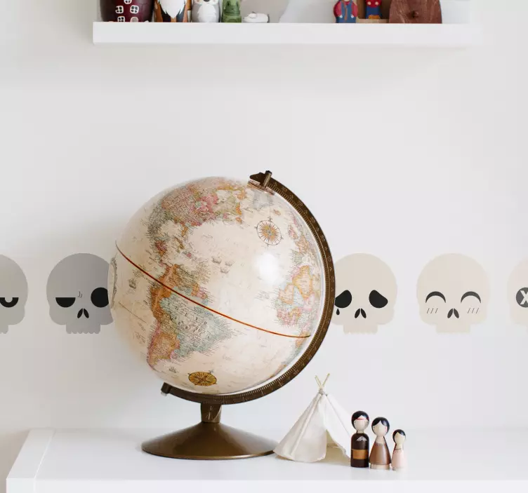 Introducing our enchanting Wall sticker whimsical skull faces, a playful and decorative design that brings a touch of fun to any space! Featuring expressive pirate skulls and charming characters, this wall sticker transforms your walls into a vibrant canvas. The intricate border adds a whimsical touch, making it a perfect addition for those who appreciate unique and creative decor.