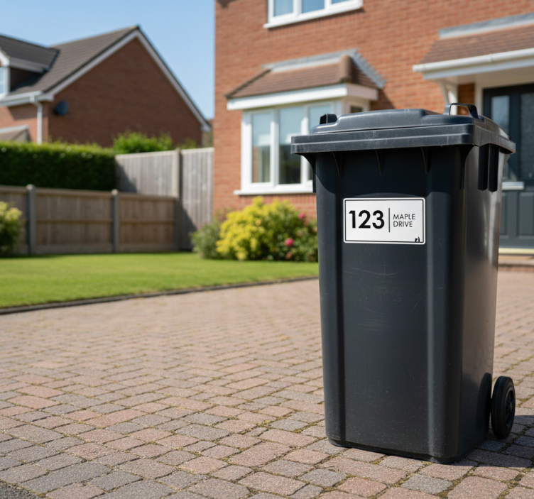 Wheelie bin stickers with modern minimalist address design