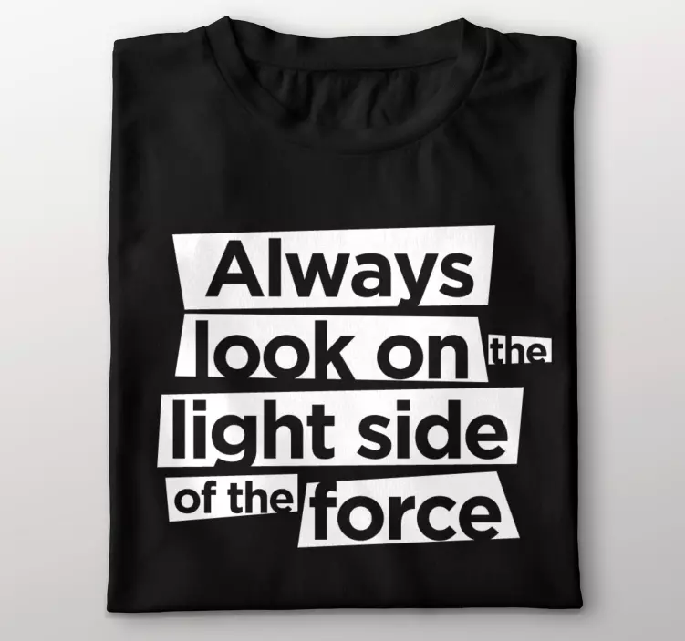 Introducing our Always look on the bright side t-shirt, a unique blend of motivation and humor! This design features a striking monocolor scheme with bold, eye-catching text that delivers a powerful quote. Crafted in classic black and white, this t-shirt not only makes a statement but also adds a touch of fun to your wardrobe. The combination of forceful words and the motivational message is perfect for anyone looking to spread positivity and laughter!