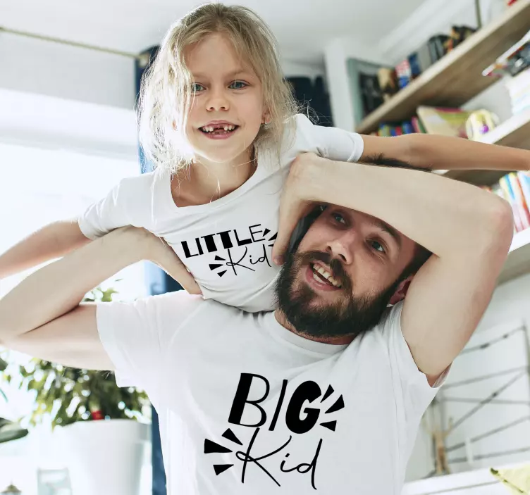 Big kid father and son shirt - Beautiful printed matching shirt for father and kid, it has funny text describing the dad as a 'big kid' and the child a little kid. The text is beautifully calligraphed and accompanied with abstract illustration that add attention to the design. The colour of the design is customizable, so also is the colour of the shirt. It is original, easy to maintain, comes in different sizes to select from, place your order with the right custom detail to receive it in just few days.