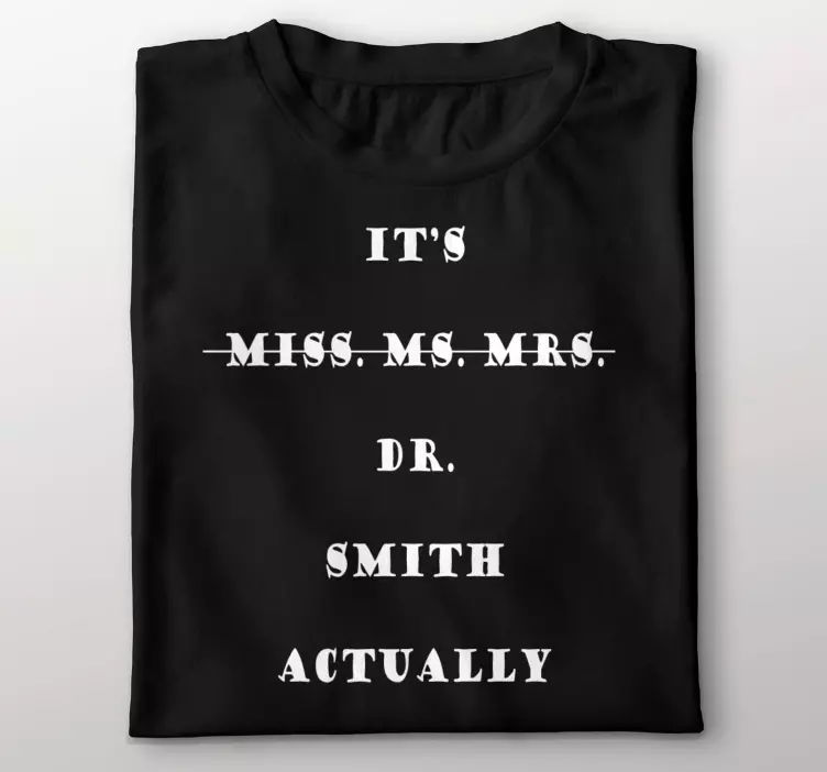 Dr Graduate Text T-shirts with name - Beautiful text printed shirt for honorary graduation school ceremony. It is customizable with name, it contains honorific title of ''Mr, mrs, Miss' which is strike with a line and replaced with Dr. tittle,. It says Dr. actually. Provide the name you want to be customized on it on the text field. It is beautifully lettered with bold text font, stylish and elegant. The colour can be changed in any one of the options on the catalog. The graduate text shirt is original, durable and easy to maintain. Available in different sizes for different fit.