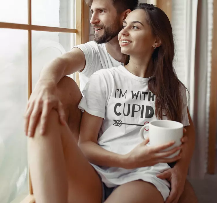 - A Love shit design for couple. Enjoy a matching outfit with your lover in this inspired mythologic ancient roman god of love shirt print. It contains a text that refers to the other saying 'I'm with cupid'. Express your love in a symbolic way in this cool cupid shirt for couple.Can I customize Cupid arrow t-shirt?