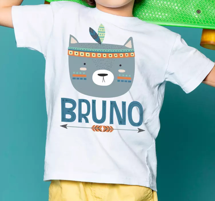 Reference: T4968This design features an adorable bear face with tribal elements, highlighted by vibrant colors and a personalized name. It radiates a cheerful vibe perfect for kids. The composition is engaging and visually appealing, making it an ideal choice for young ones.