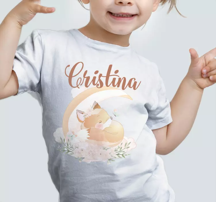 Introducing our enchanting Kids t-shirt sleeping fox with name, a delightful piece that captures the essence of whimsy and charm! This adorable design features a sleeping fox nestled under a glowing moon, surrounded by fluffy clouds and blooming flowers. It's perfect for little ones who love cute animals and personalized clothing. The floral accents add a touch of magic, making it an ideal choice for your baby’s wardrobe.