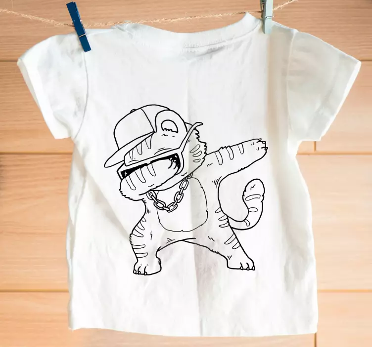 The Kids t-shirt with cool cat vibe features a delightful design that captures the essence of a playful cat dancing joyfully. With its charming drawing of a cute dancer cat, this shirt embodies a stylish blend of kid's fashion and animal fun, making it perfect for your little one's wardrobe!