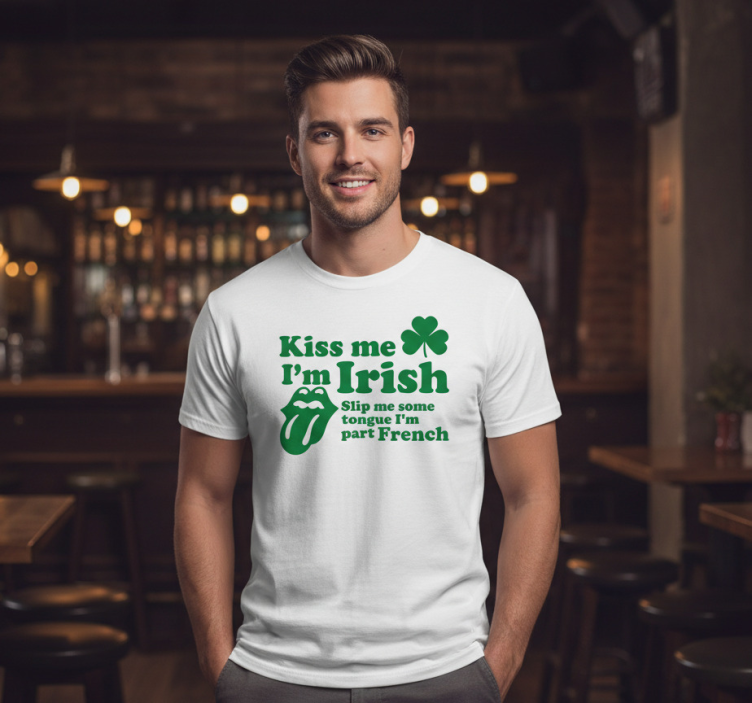 Reference: T5542Introducing the Kiss me im irish shirt sexy irish and french design, a charming blend of Irish and French aesthetics that captures the spirit of celebration! This stunning t-shirt features a classic round neck and short sleeves, offering both comfort and style. Crafted from a soft fabric blend of 85% cotton and 15% viscose, it is perfect for any occasion. Available in timeless colors such as black and white, this shirt is designed to make a statement while being super comfy!