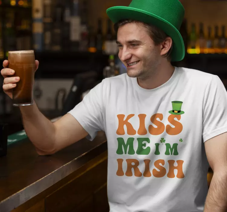 Reference: T3727Get ready to celebrate Saint Patrick's Day in style with our Kiss Me I'm Irish quote t-shirt! This fun and festive design features a playful combination of Irish elements including a clover, a quote, and of course, the classic phrase 'Kiss Me I'm Irish'. Whether you're from Ireland or just feeling the luck of the Irish, this t-shirt is the perfect way to show off your Irish pride!