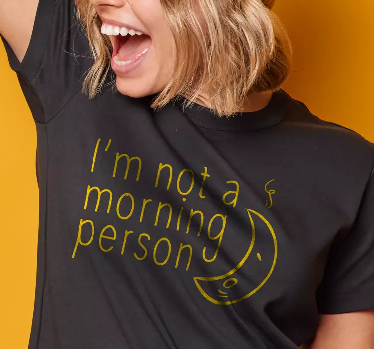 If you, like the vast majority of us, find yourself struggling to crawl out of your warm comfy bed in the morning, this slogan shirt is perfect for you! It contains the text "I'm not a morning person" alongside a crescent moon illustration, show the world you'd much rather be in bed with this funny saying shirt.