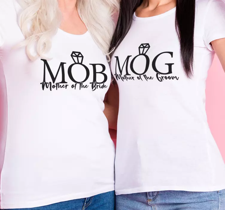 Here is a shirt for the groom's mom and the bride's mother to identify as a parent at the daughter's or son's wedding ceremony. It's a duo shirt to be worn by both parents. The design is simply an abbreviation of what it stands for, lettered in bold and stylish text lettering.