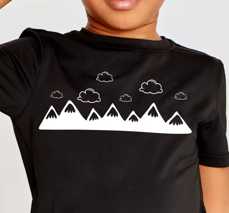 Introducing the Mountain cloud adventure t-shirt, a stunning piece that beautifully captures the essence of outdoor exploration! The design features a mesmerizing blend of cloud and mountain silhouettes, evoking the spirit of adventure and the joy of nature. Perfect for children who love the great outdoors, this t-shirt is a celebration of clouds and mountains, designed in classic black and white tones.