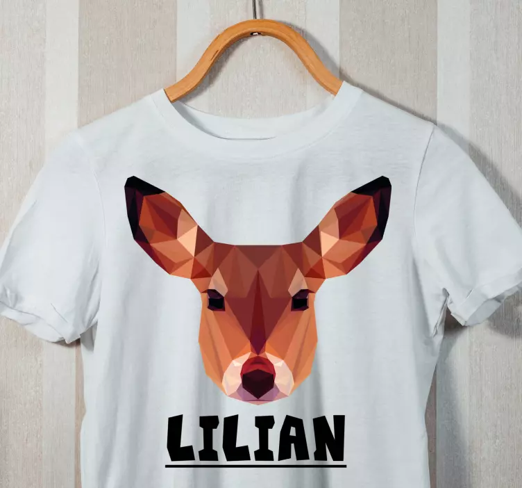 Introducing our Stylish deer head t-shirt, a unique piece of fashion that showcases a captivating geometric design. Featuring a cartoon-style depiction of a reindeer face, this polygonal artwork brings an artistic flair to the animal kingdom. Personalize it with a custom name for a truly one-of-a-kind statement!