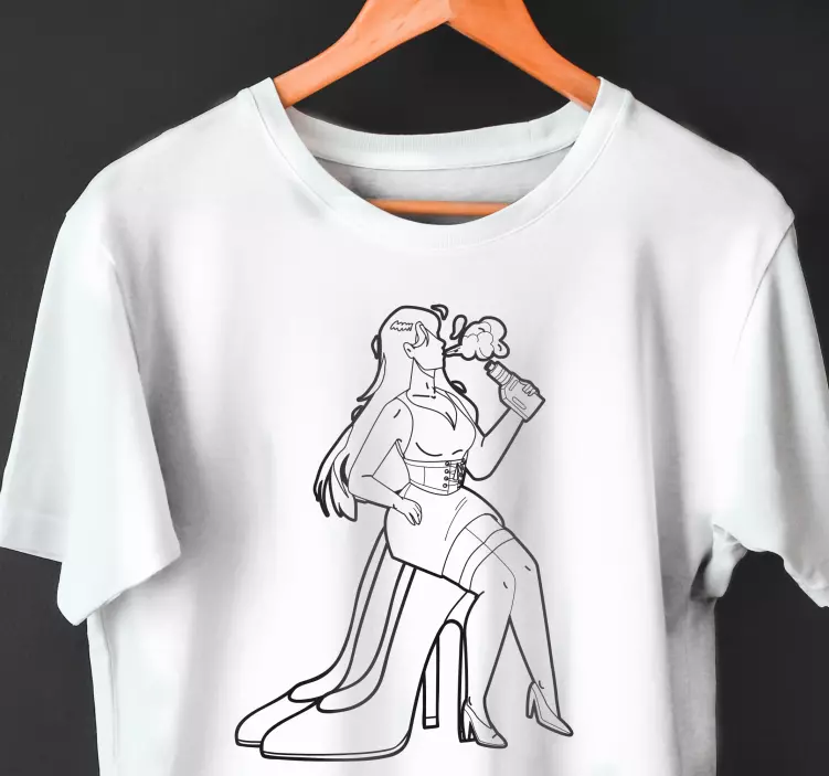 Introducing our Stylish high heel vibe t-shirt, a perfect blend of fashion and art! This captivating design features a stunning hand-drawn illustration of a woman's silhouette confidently holding a vape while dressed in chic high heels. The sketch evokes a sense of elegance, making it a must-have for any fashion enthusiast who appreciates a cocktail of style and sass!