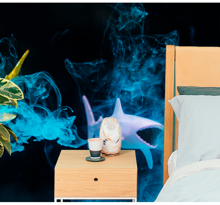 Transform your space with our stunning Animals wall mural colorful shark illustration. This eye-catching design features a beautifully crafted shark swimming through a vibrant underwater scene filled with swirling water and ethereal smoke. The photomontage captures the mesmerizing essence of ocean life, bringing the deep blue sea and its marine wonders into your home. Dive into a world of creativity and imagination with this enchanting mural!