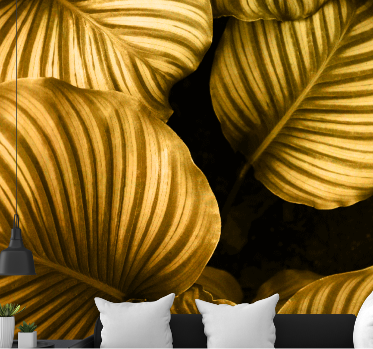 Transform your space with our stunning Flower wall mural with golden leaf patterns, a captivating design that beautifully merges tropical leaves with a touch of elegance. The intricate golden leaf patterns dance across a textured backdrop, evoking the essence of nature and bringing a sense of tranquility into your home. This mural is a perfect blend of artistry and sophistication, ideal for those who appreciate the beauty of the outdoors.