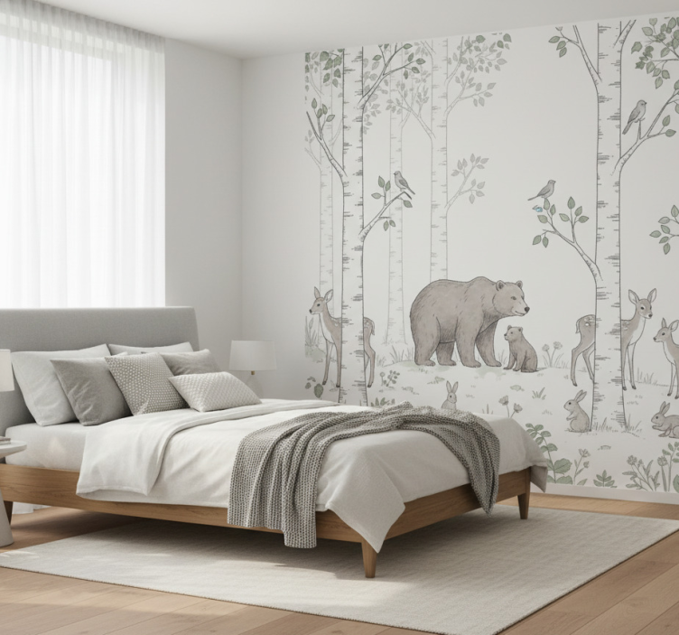 Applying our Forest wallpaper playful woodland illustration forest wallpaper is a breeze! Use glue to attach the wallpaper to your wall with the help of a roller, brush, and cutter. With proper care, this wallpaper will provide you with years of beauty and charm.