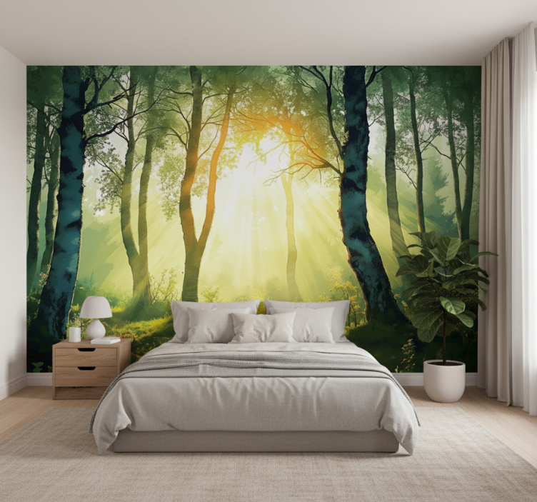 Reference: F11953Transform your space with our stunning Forest wallpaper sunlit birch mural, where the beauty of nature meets exquisite design. This captivating mural showcases a sun-drenched birch forest, bringing a warm, serene ambiance to any room. With its matt colours and non-woven material, this mural not only enhances your decor but also offers durability and ease of maintenance, making it the perfect choice for your home!