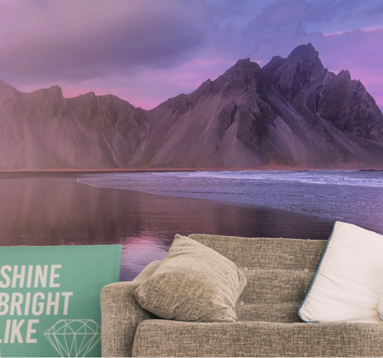 Transform your space with our stunning Landscape wall mural majestic mountain view. This exquisite design captures the breathtaking essence of towering mountains, golden sands, and a serene ocean, beautifully reflecting the natural landscape in a way that invites peace and tranquility into any room. The photography is so vivid it feels as if you could step right into the scene, making it a perfect focal point for your home or office!