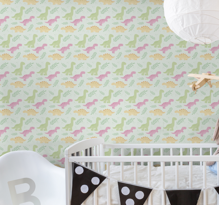 The Pastel Dinosaur Pattern dinosaurs wallpaper is an ideal choice for adding a unique and playful element to any room. Its adorable cartoon dinosaur design in a pastel color palette makes it perfect for creating a fun and cheerful atmosphere, especially in kids' rooms. The pattern adds a touch of whimsy and creativity to the space, making it an excellent choice for decoration.