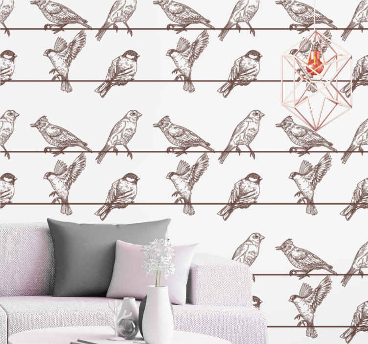 Reference: P8880A charming series of sketched birds perched on lines, reminiscent of a music staff. This repeating pattern captures the essence of avian life in a stylized, nature-inspired design.